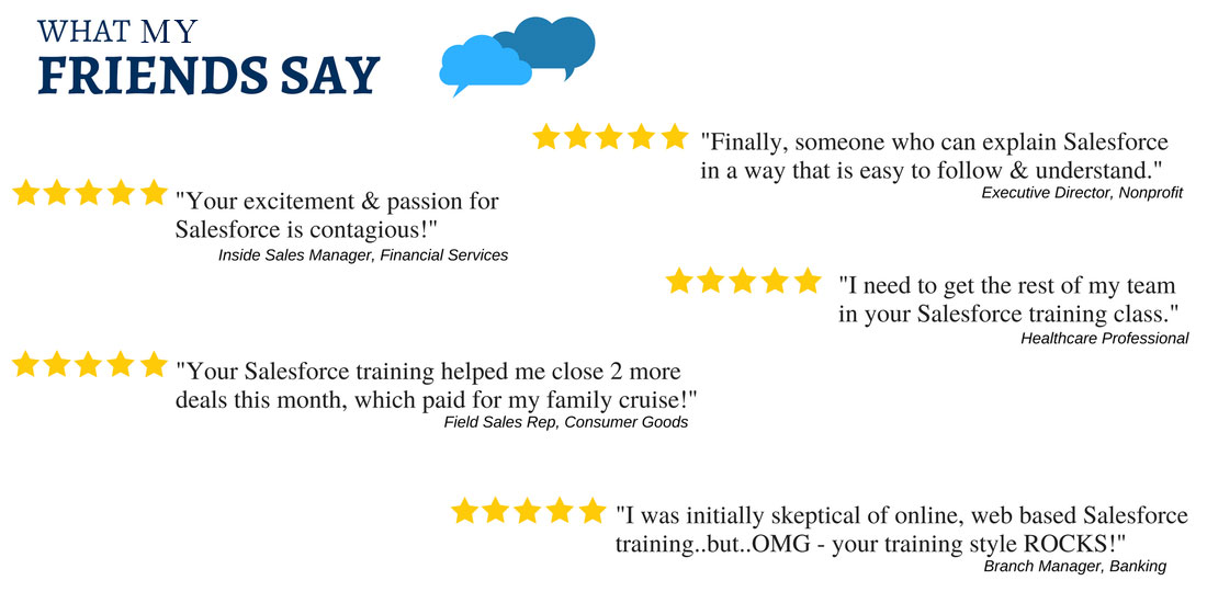 I will help you focus on those areas of Salesforce that are meaningful to you – in your business and your role. I will help you learn best practices on how to use Salesforce most efficiently. I will help you streamline and simplify your business processes, and help you automate them in Salesforce.
